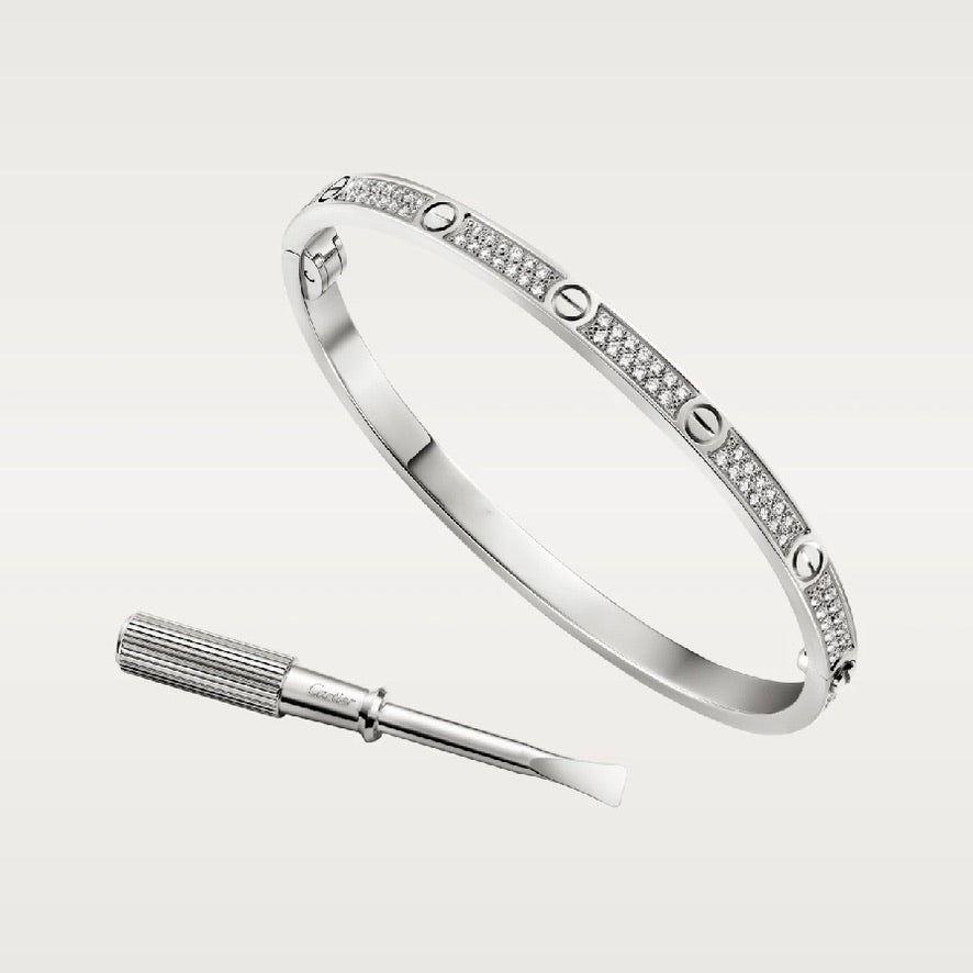 LOVE bracelet, Small Model - Paved , Stainless steel and 18k white-gold plating.