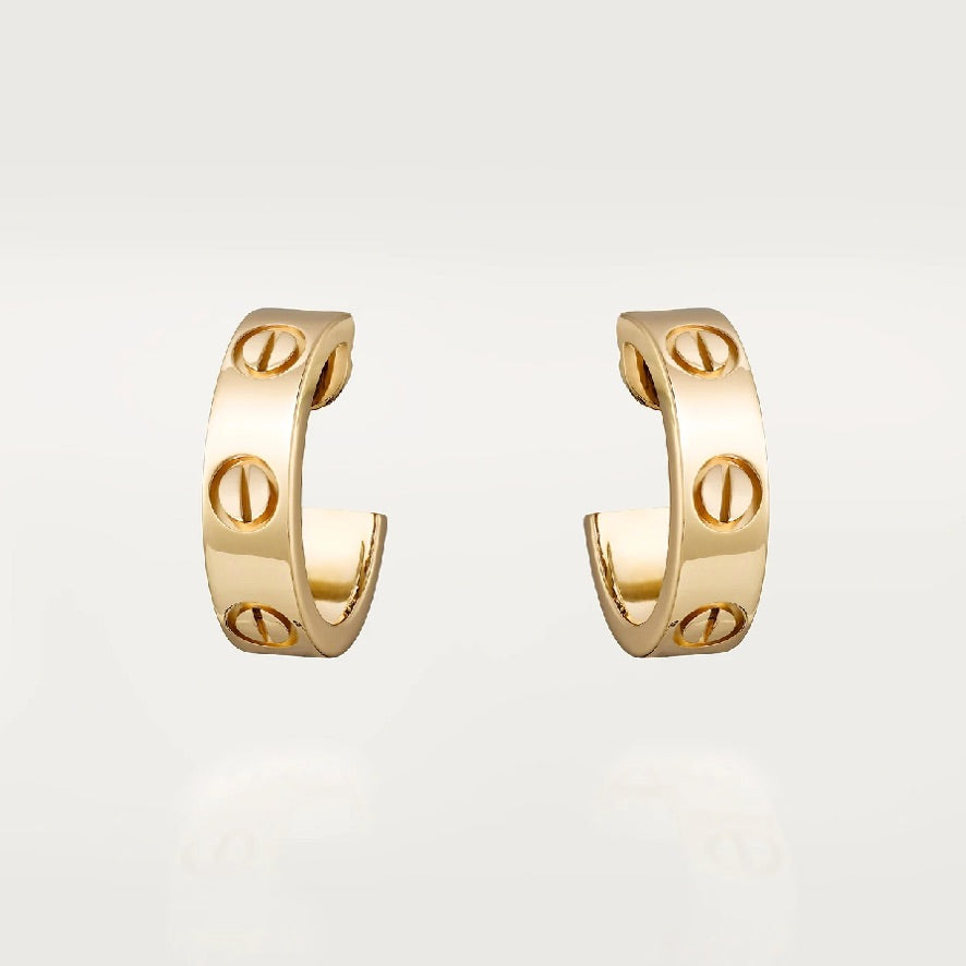 LOVE earrings, Stainless steel and 18k gold plating. Width: 5.7 mm